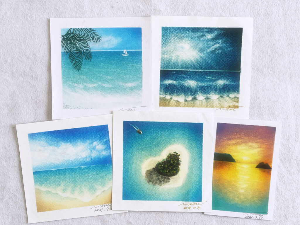 ・パステルアート… パステル和(NAGOMI)アート、パステリズム パステルアート初級講座・海講座